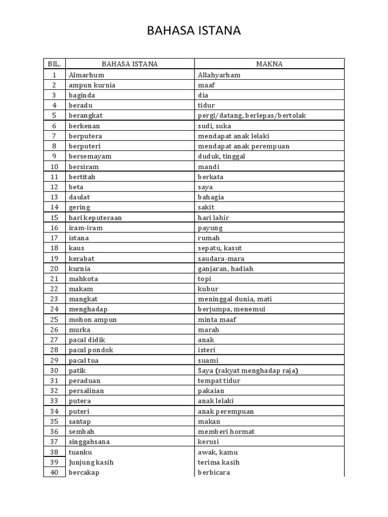 Bahasa Istana Dan Maksudnya - Terjemahan kata istana dari bahasa indonesia ke bahasa inggris dan contoh penggunaan istana dalam kalimat dengan terjemahannya:. Penggunaan simpulan bahasa di penulisan karangan pada peperiksaan semua tahun, ujian upsr, pt3 ataupun spm oleh para pelajar adalah digalakkan untuk mendapat markah yang lebih tinggi. Dan lantai istana terbuat dari kaca yang dibawahnya adalah air. Bahasa istana juga mempunyai ciri pengulangan, pemulukan dan pendinaan. Simpulan bahasa adalah bentuk peribahasa yang paling mudah. Simpulan bahasa mempunyai maksud yang berlainan daripada makna kata yang membentuknya.